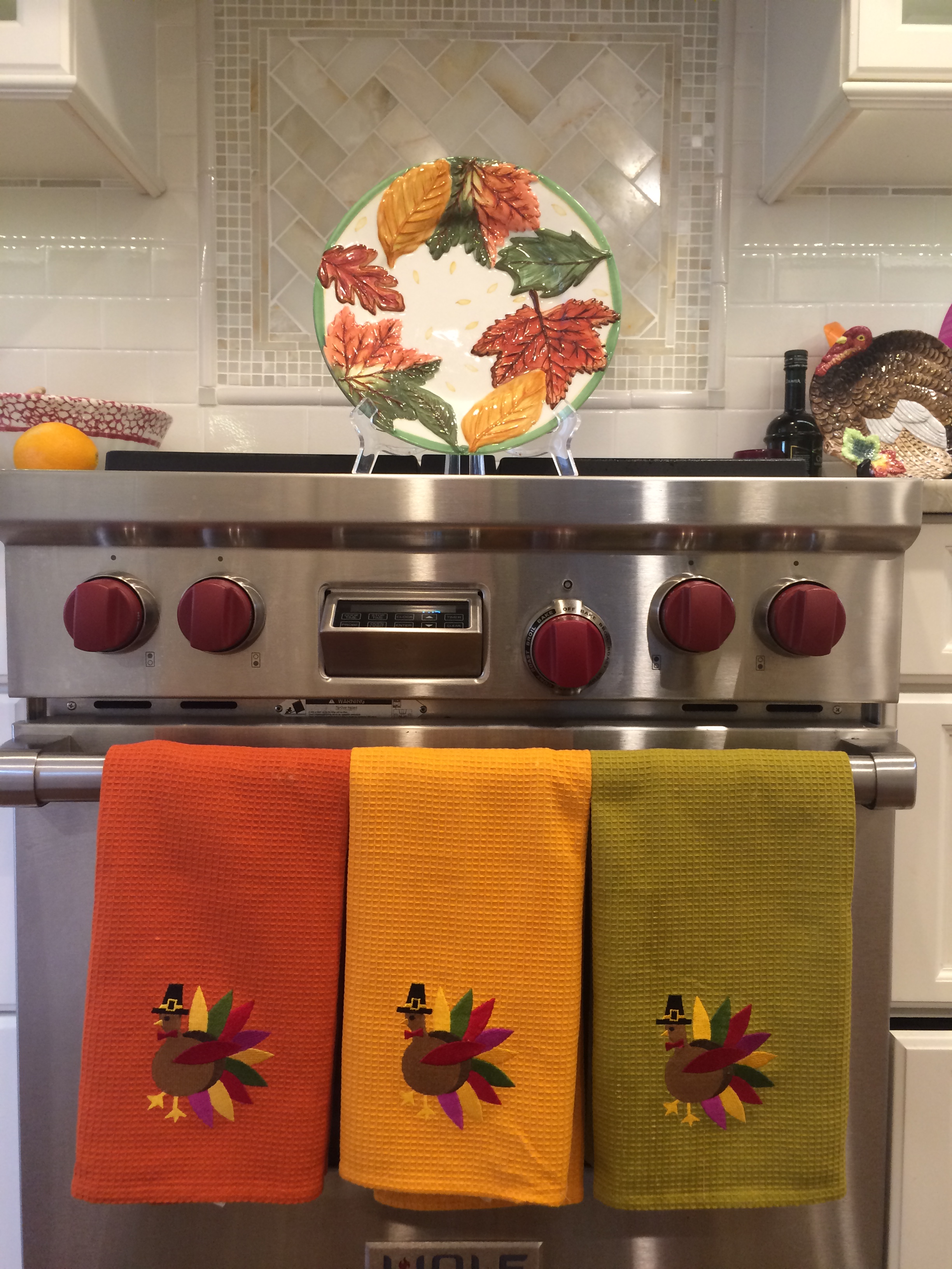 For the month of October, I flipped the towels around. No turkeys anywhere. On November 1, I flipped them back and Voilà there were turkeys everywhere.